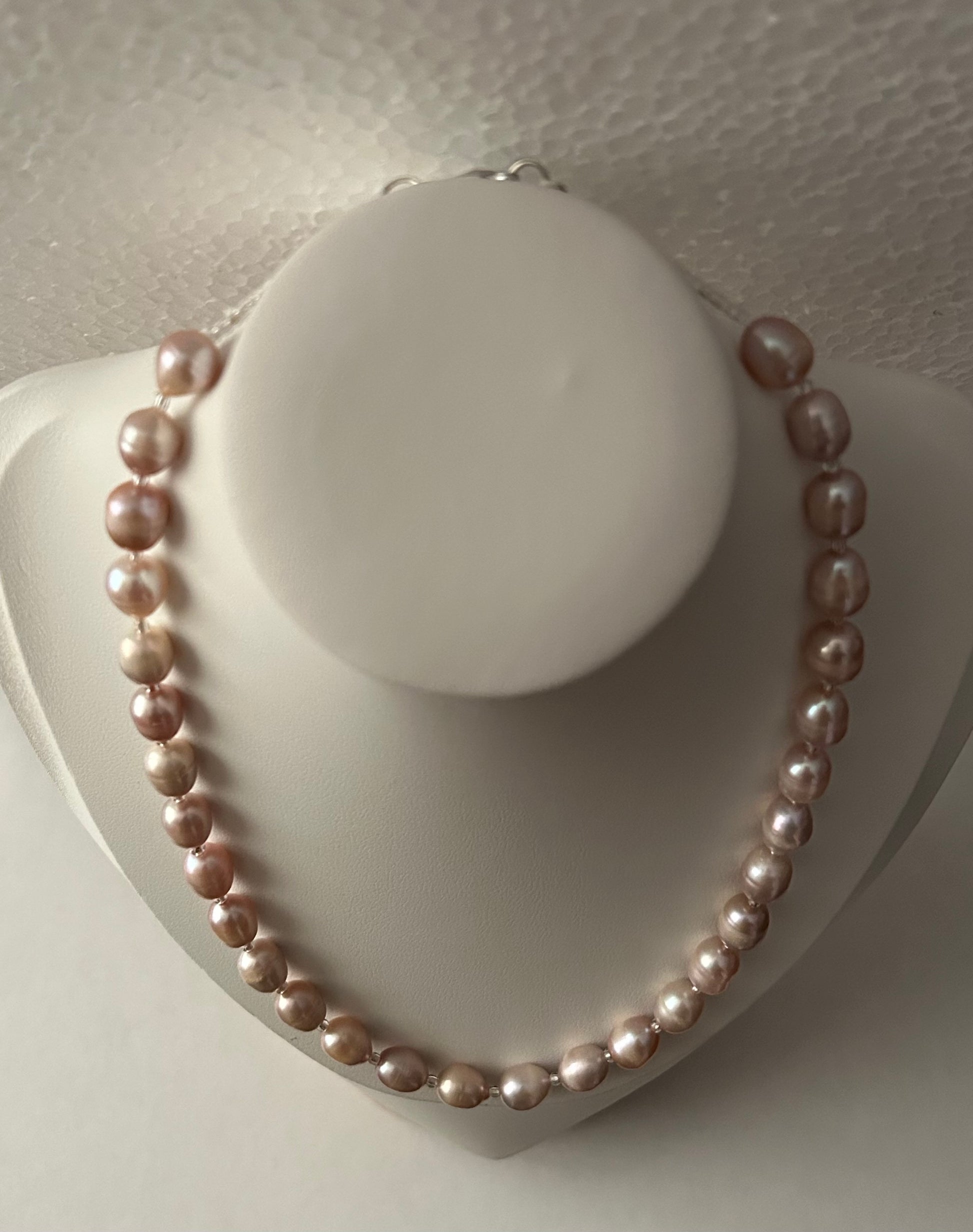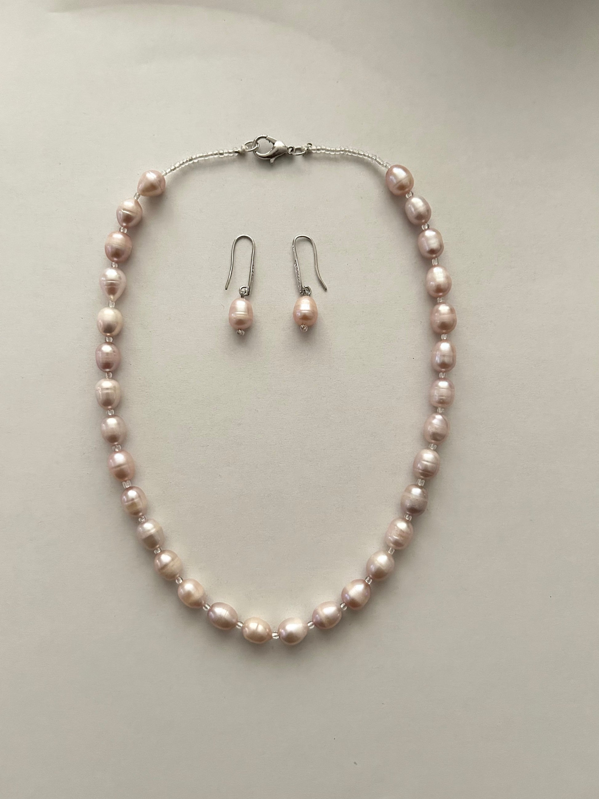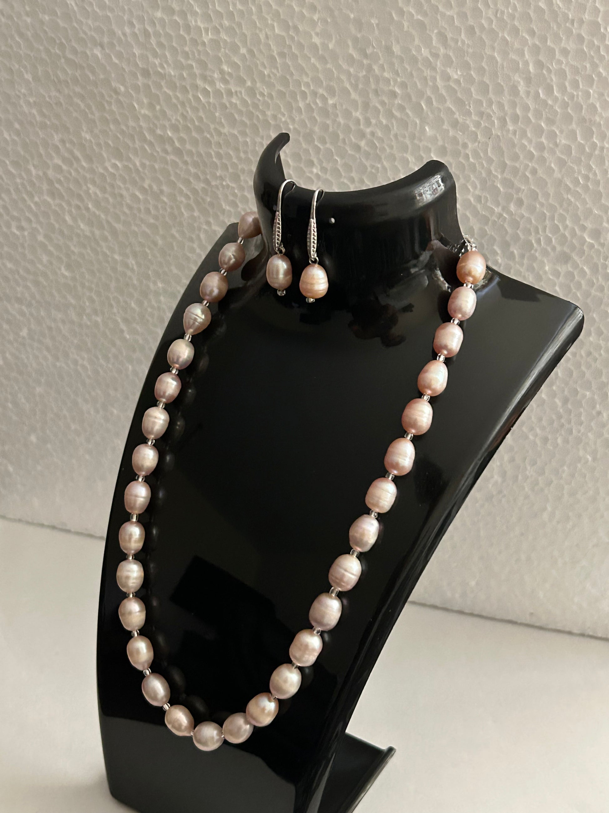 Handcrafted Pearl Necklace Set, Matching Earrings-Colour Pink Pearl