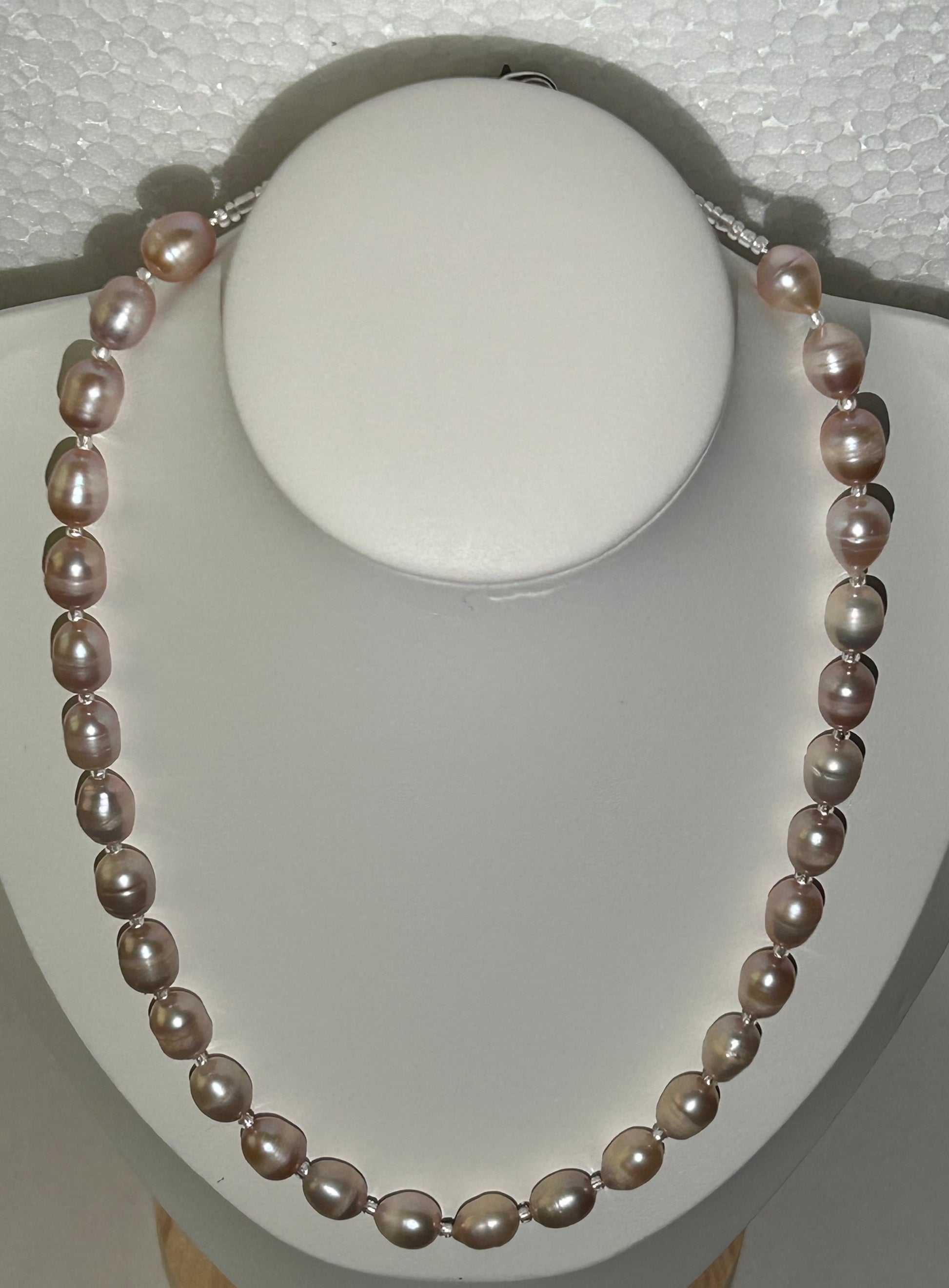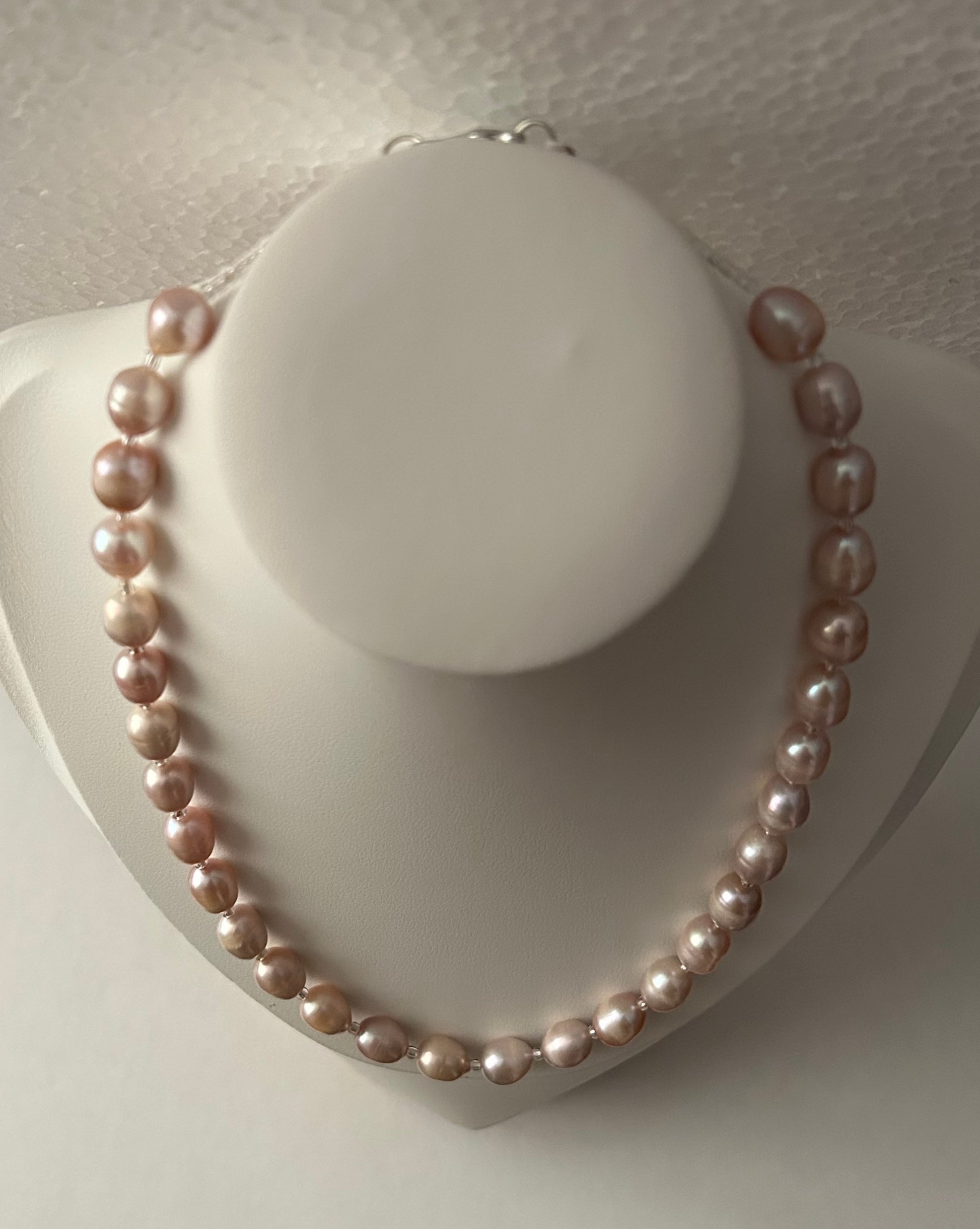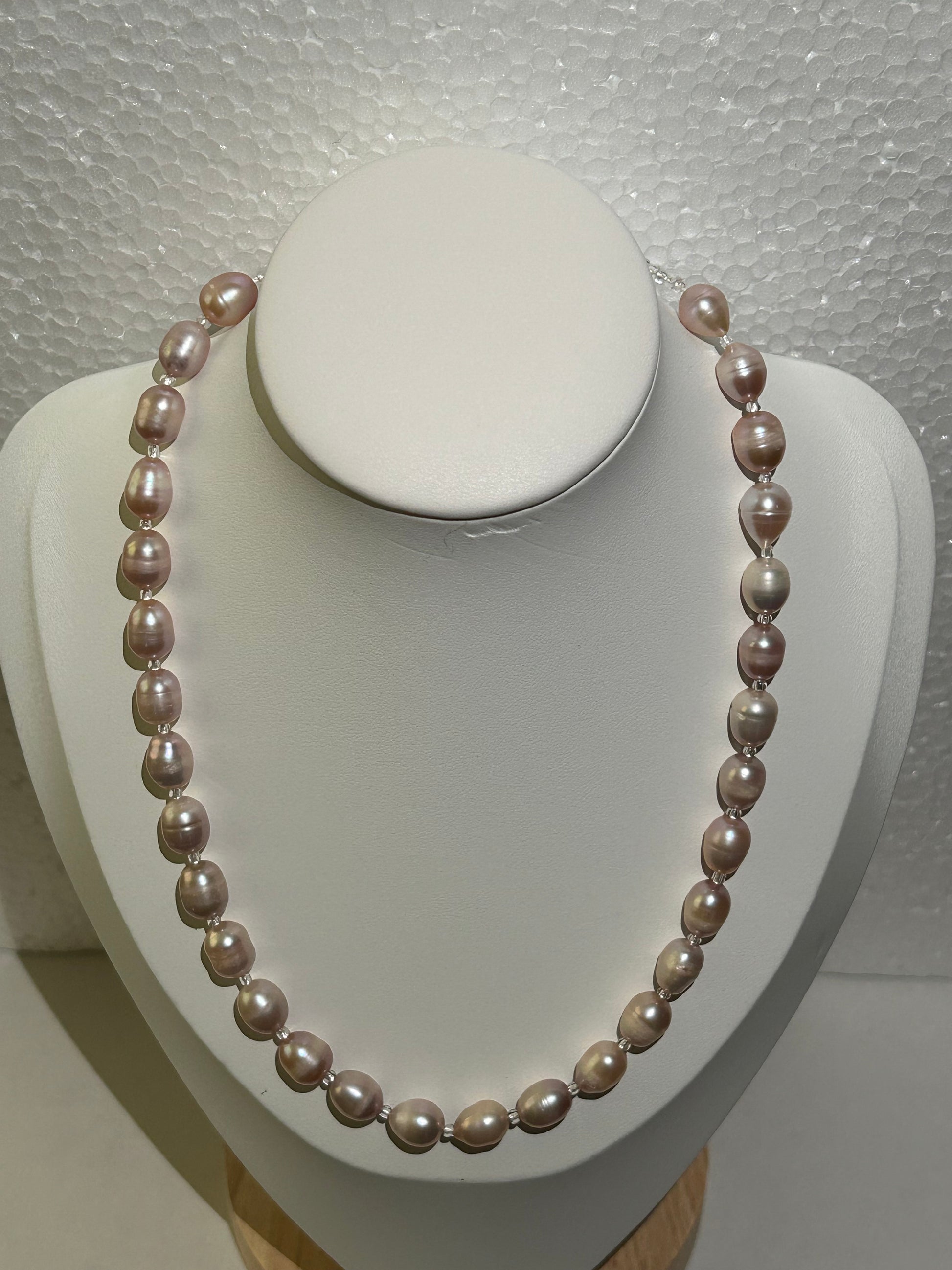 Handcrafted Pearl Necklace Set, Matching Earrings-Colour Pink Pearl